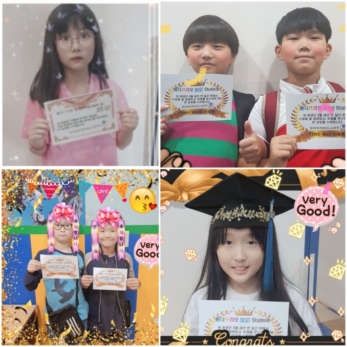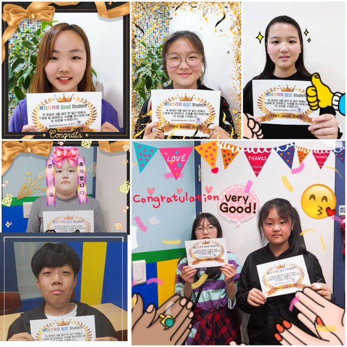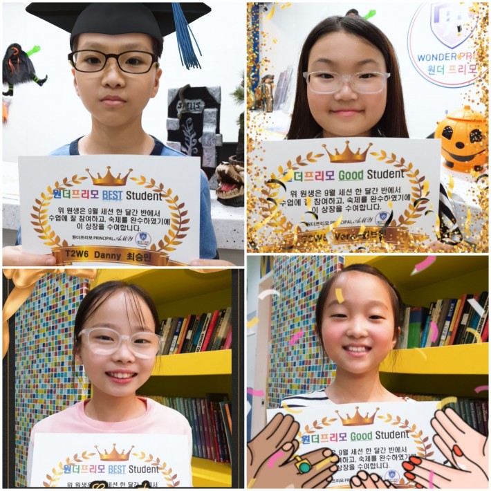 저희 원더프리모 어학원에서 9월 세션 기간동안 반에서 선생님과 반친구들과 수업에 잘 참여하고, 성실히 숙제도 잘 완료한 멋진 학생들의 모습입니다~^^ 모두 멋지네요~! Great♡