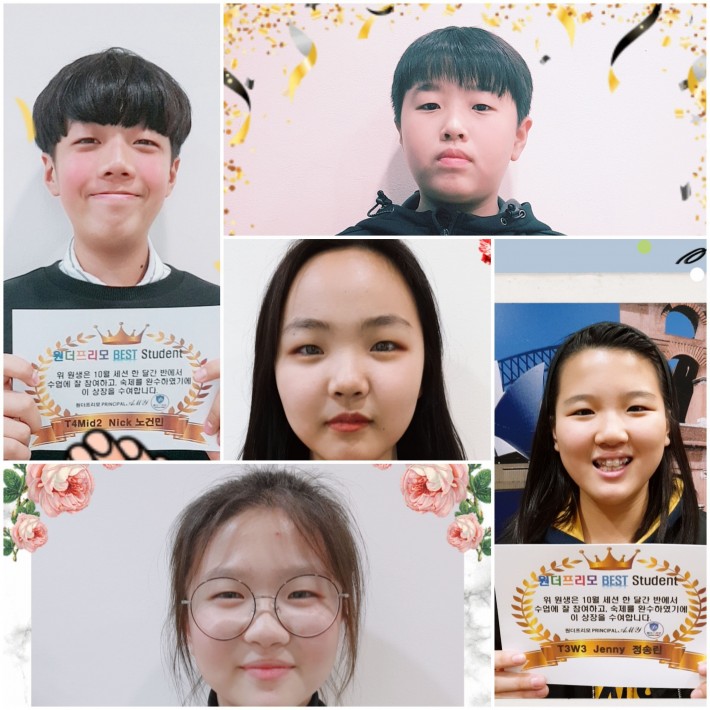 원더프리모 10월 우수학습자들입니다.