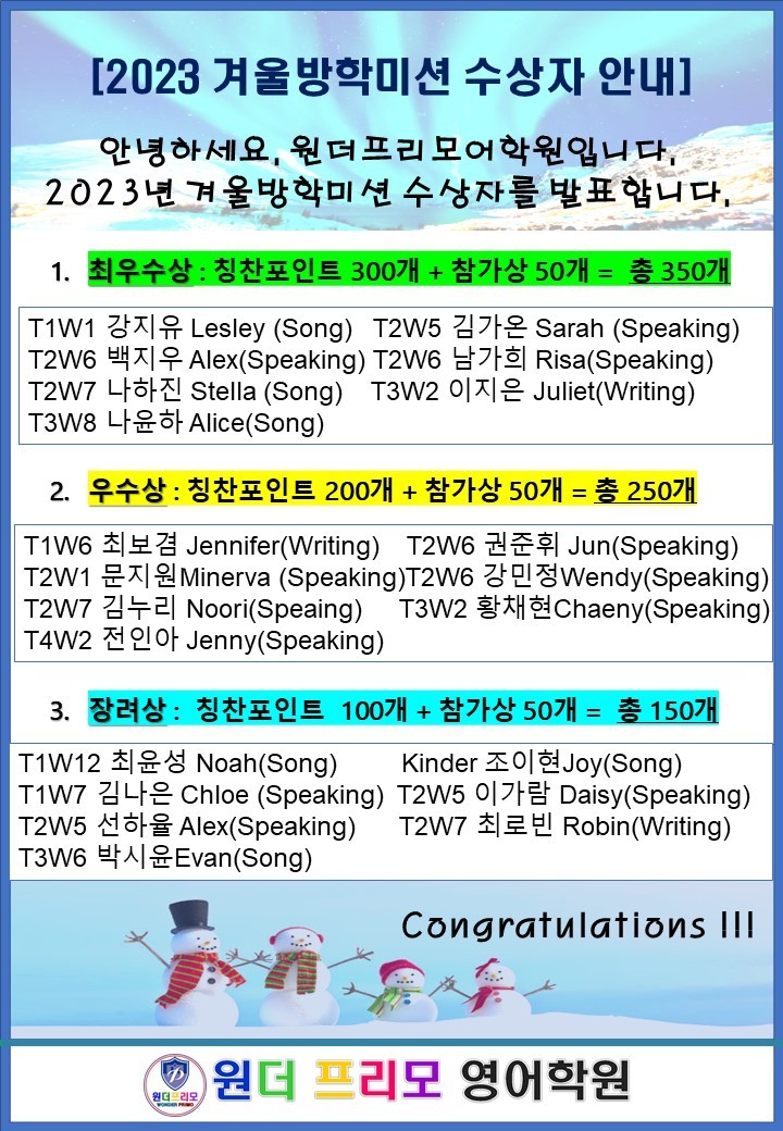 2023 겨울방학미션 수상자 발표
