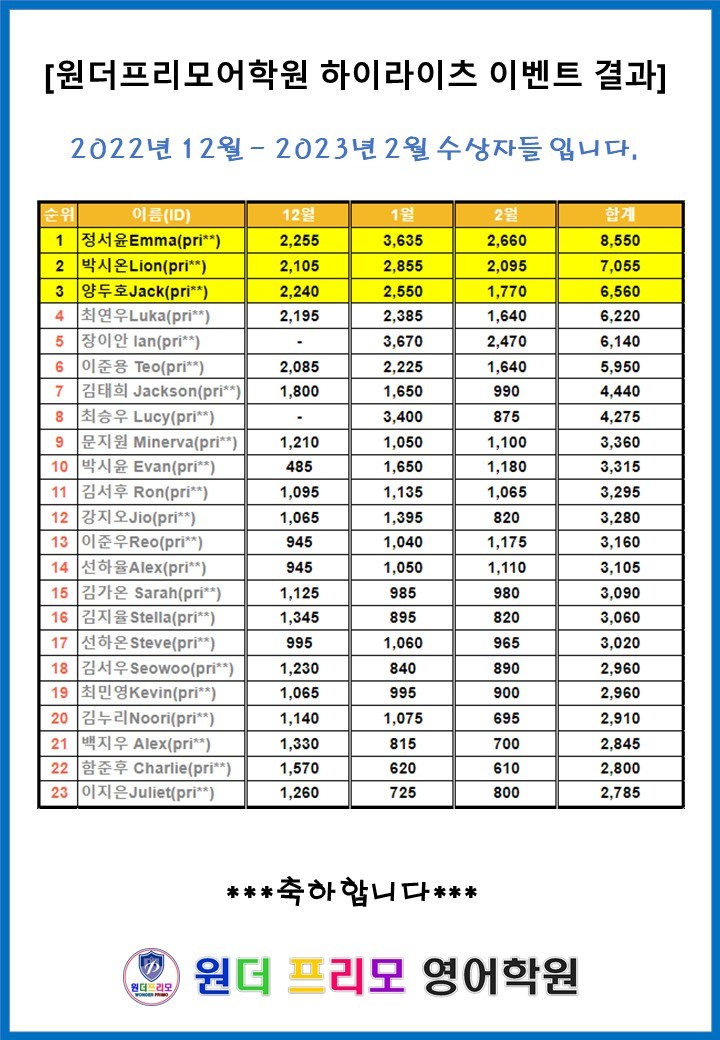 1등 정서윤 Emma