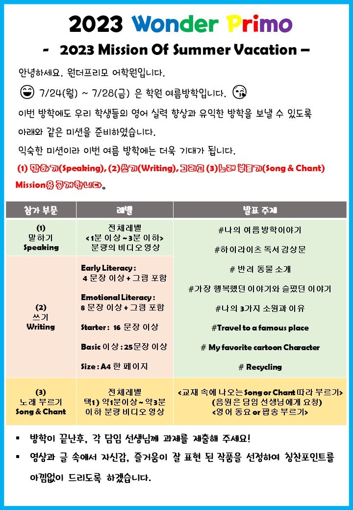 2023 여름방학 Mission 안내합니다