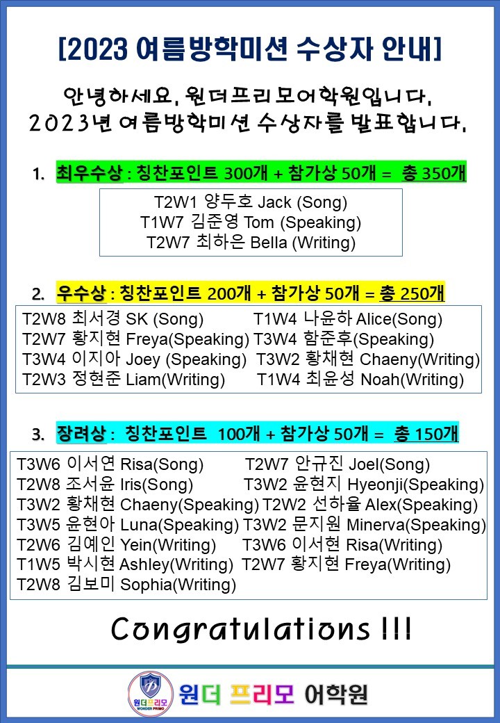 2023 여름방학미션 수상자 발표