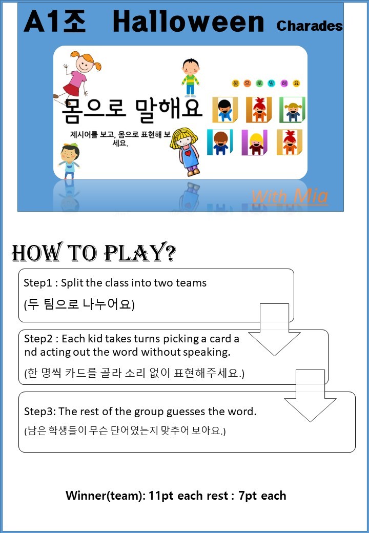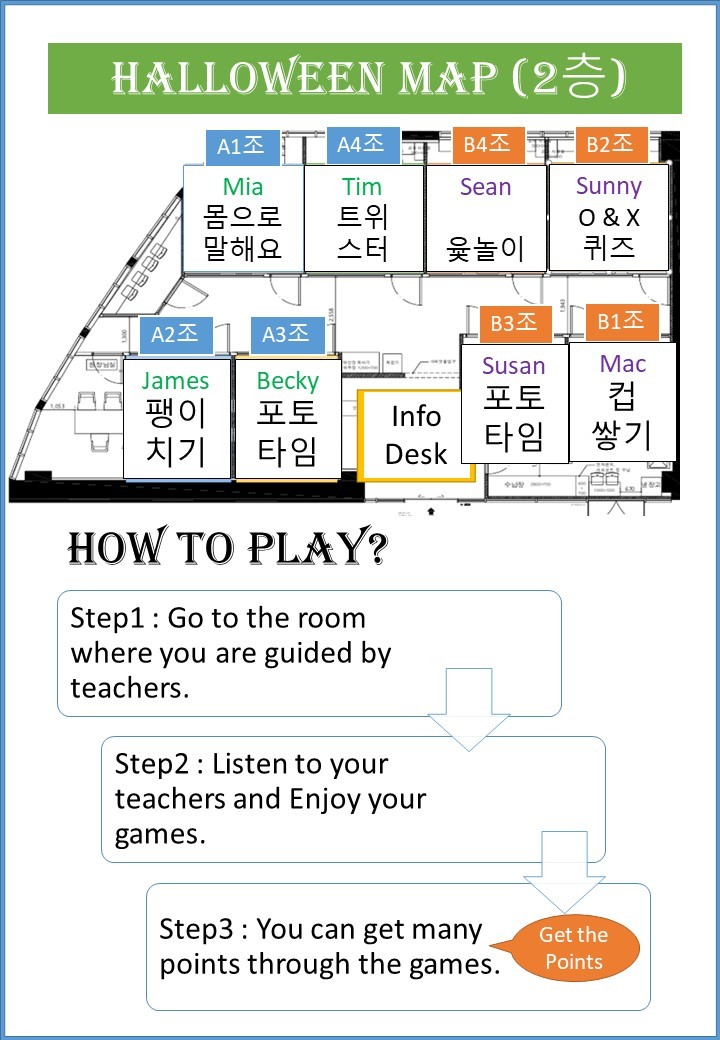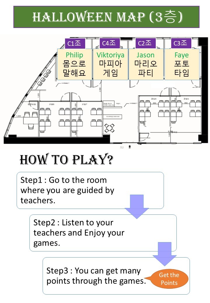 할로윈데이에서 우리 학생들이 참여하게 될 게임을 안내드립니다.