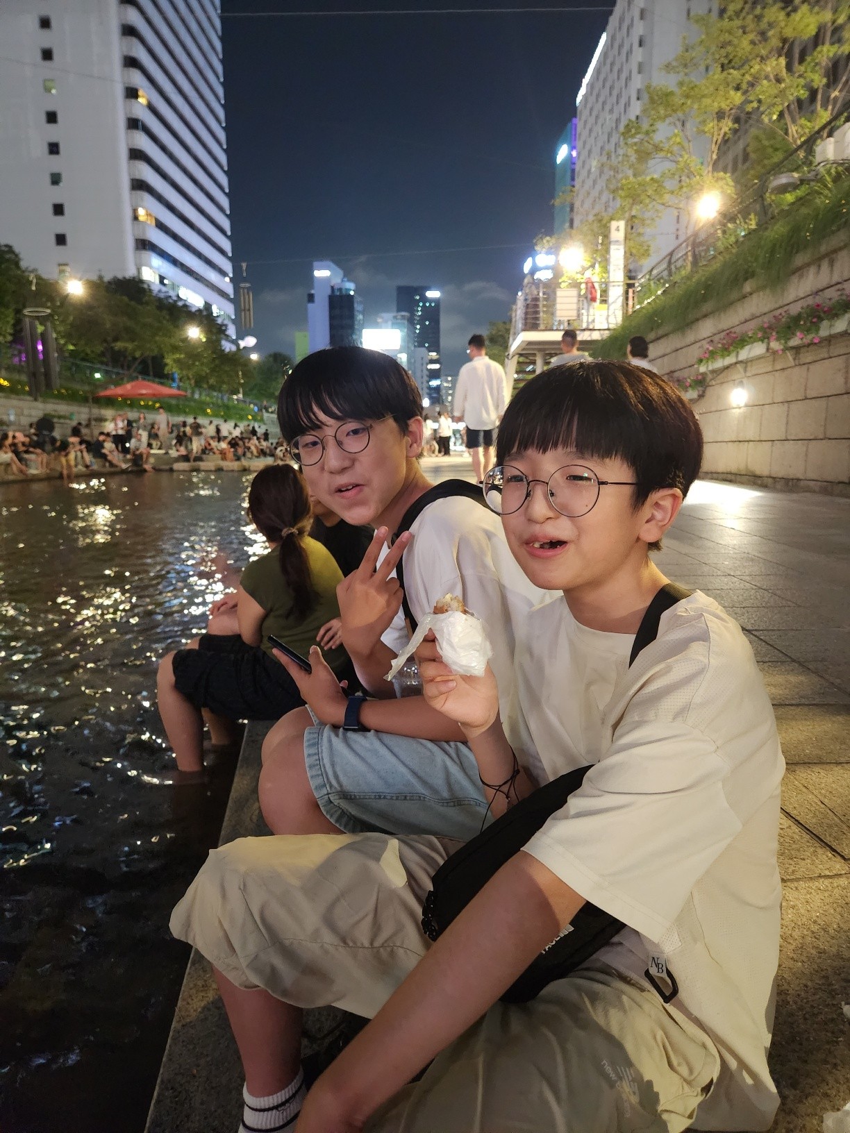 저녁은 청계천에서 발을 담구고 먹었어요!