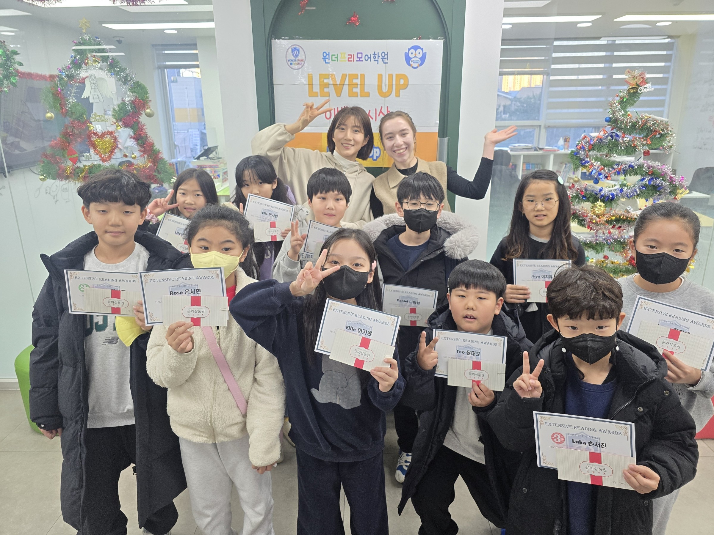가장 많은 책을 읽은 학생들에게 다독상을 수여합니다.